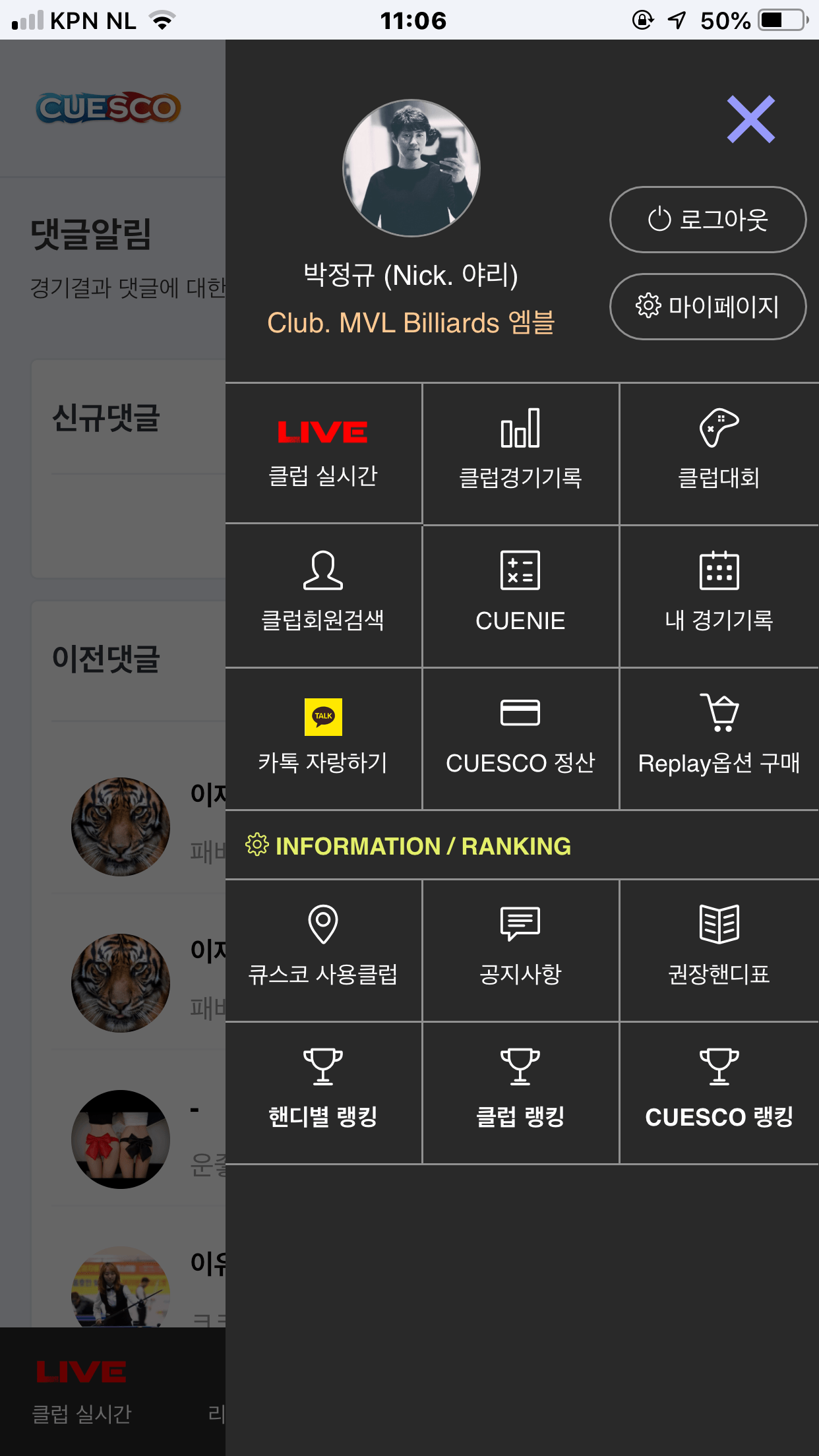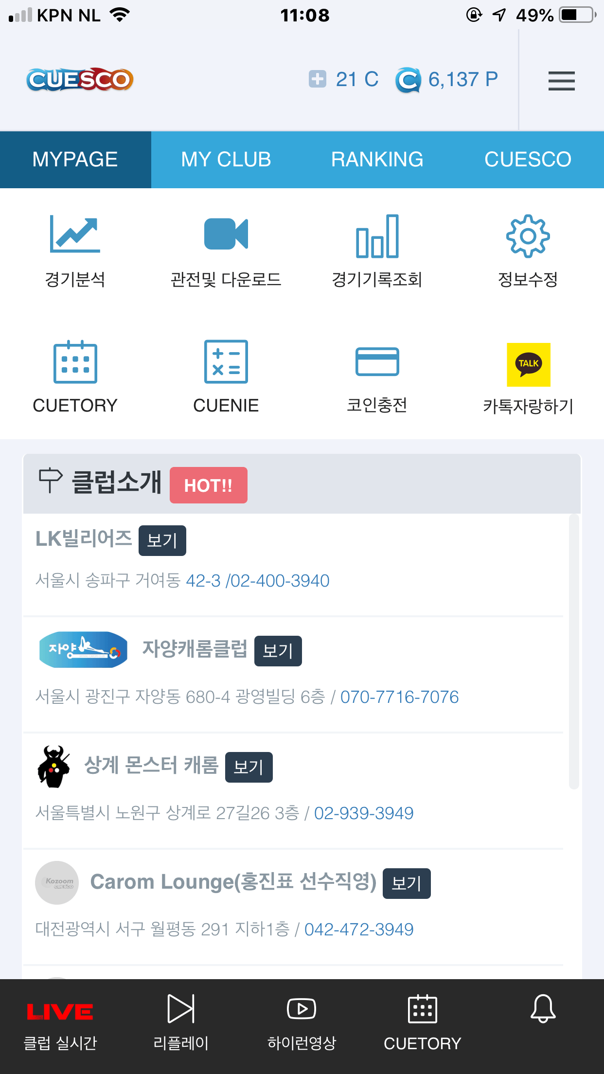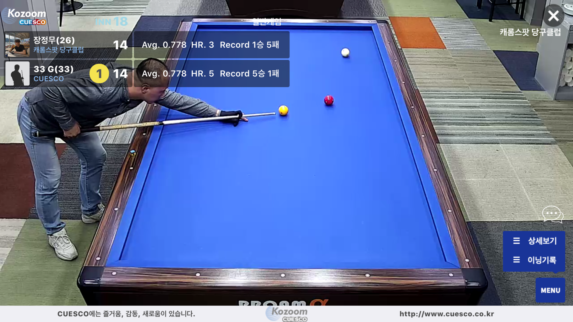 Watching a match LIVE inside the Cuesco App with sidecam angle